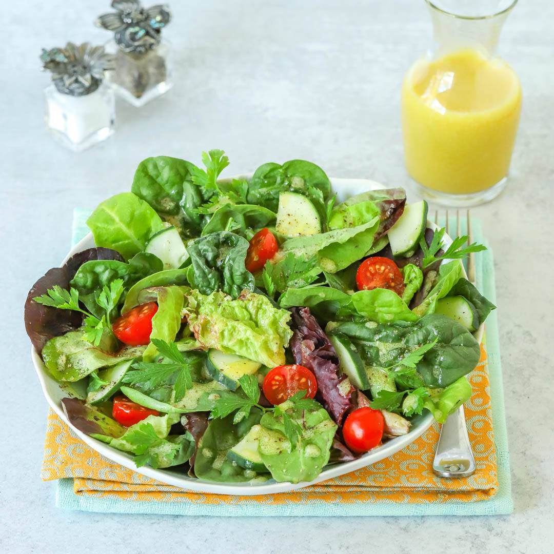 Bright, fresh, and elegant, this salad combines tender spinach with hard-boiled eggs and herbs. The dressing adds a lively citrus note that balances the warmth of the curries. (See Note)